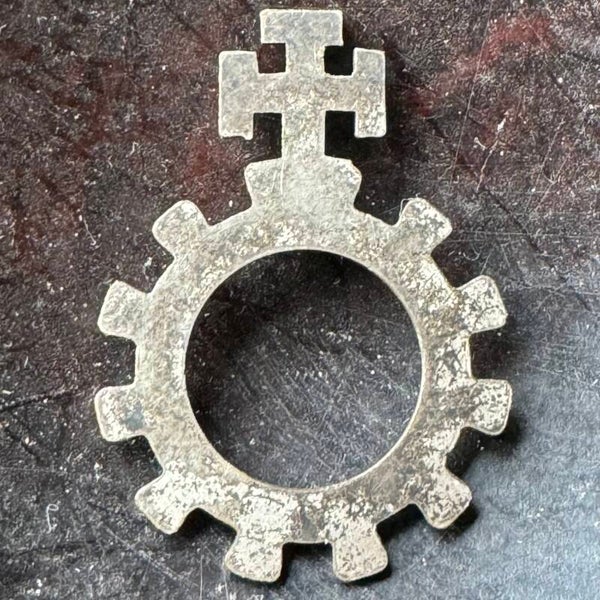 Deze ring heeft hoekige uitstulpingen en is aan 1 zijde bewerkt.