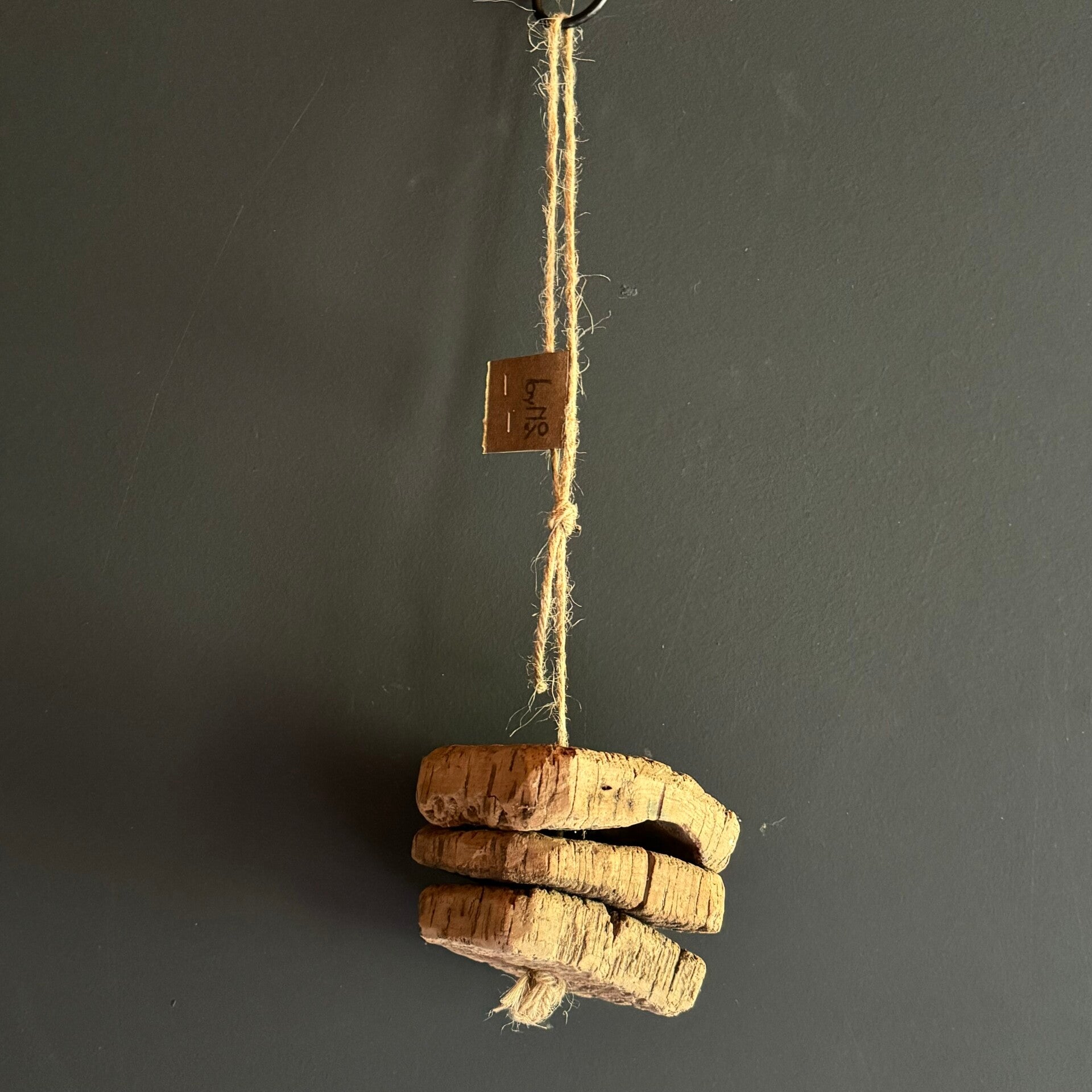Verschillende soorten en maten drijfkurken, samengebonden met een touw. Er zijn er met 1 kurk maar ook met 3, 4 of 5 kurken.