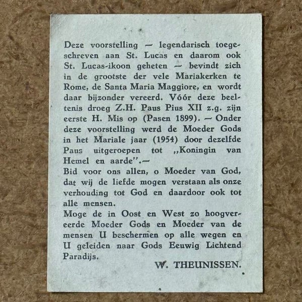 Op de achterkant zit een driehoekje om de Icoon te kunnen ophangen, ook zit er een verhaal achterop geplakt.