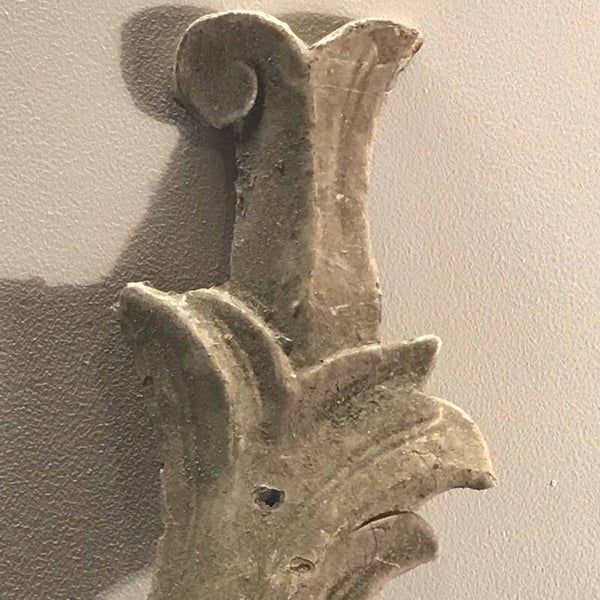 Door de tijd is deze vuil-wit geworden. Er is een deel gelijmd, maar daardoor niet minder mooi.