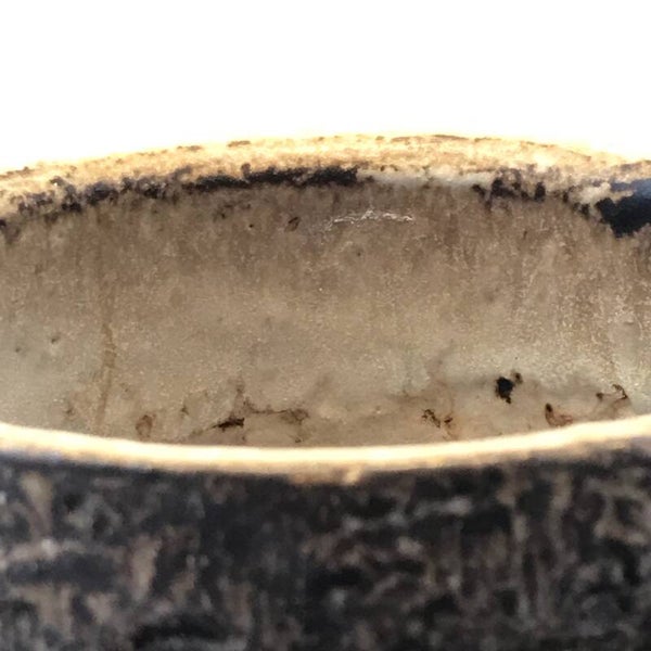 De buitenkant is bruin-okergeel gemêleerd; de binnenkant gebroken wit.
