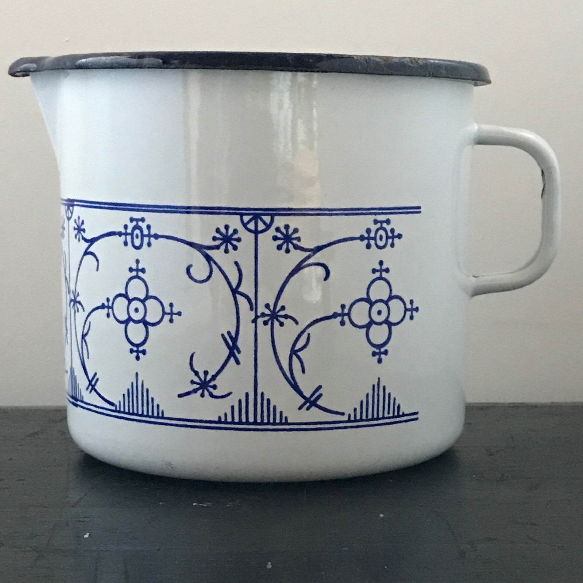 Een mooie emaille melkkan voor 1 liter. Saksich Blauw.