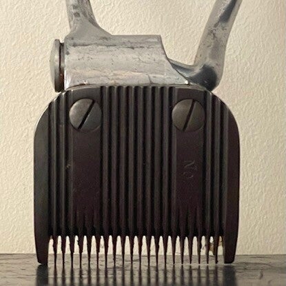 Een mooie oude handtondeuse voor rechtshandigen. Hij is afkomstig uit een oude heren kapsalon en is van het merk Horstator.